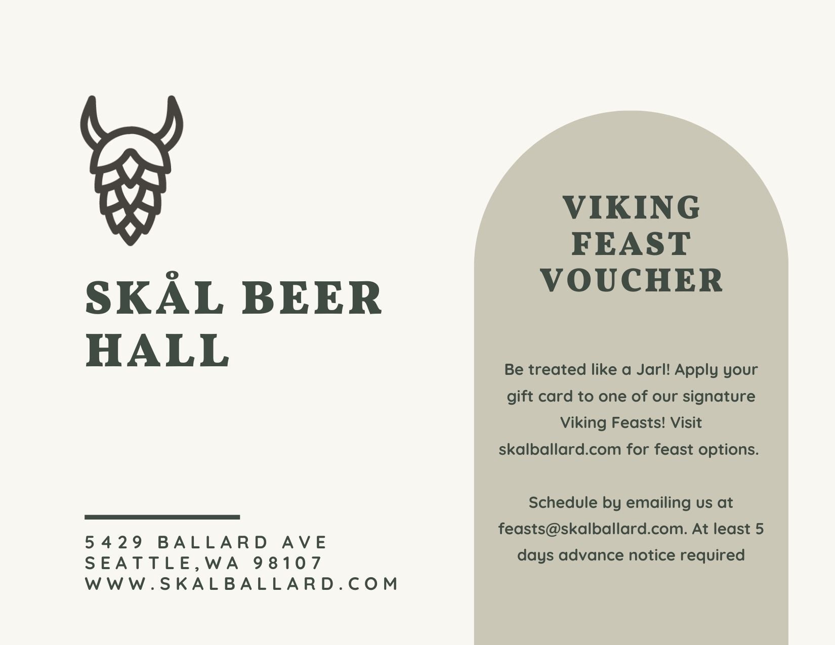 Treat a loved one like a Jarl! Give the gift of a future Viking Feast at the beer hall this holiday season. This package includes the option for a $50, $100, $150, or $200 gift card to be applied towards a future feast experience at the beer hall. Learn more about our Viking Feasts.